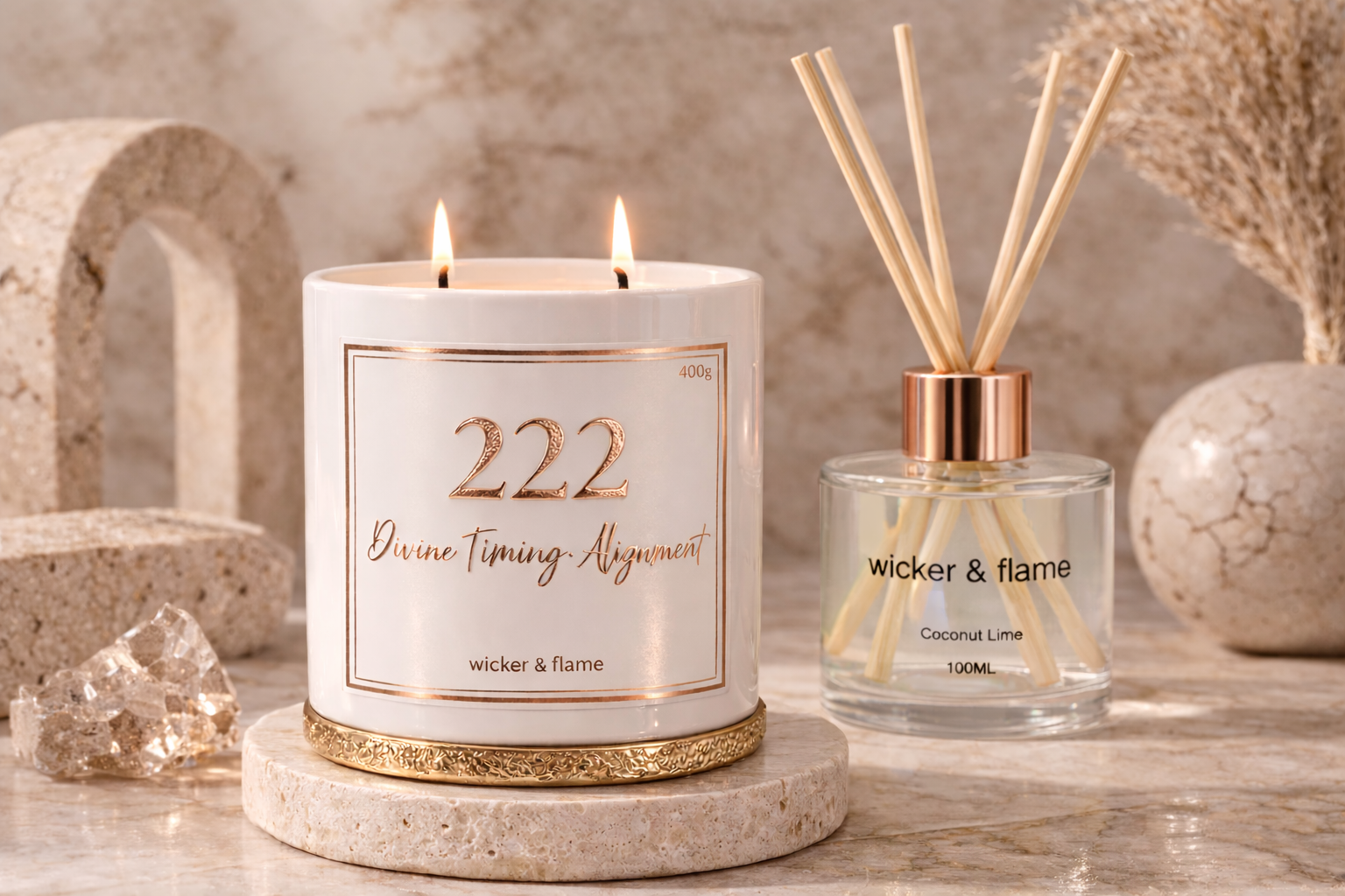 This luxurious set includes one Angel Number Candle & Luxury Fragrance Diffuser, thoughtfully created to elevate the energy of your home while surrounding you with scent that feels both grounding and uplifting.
